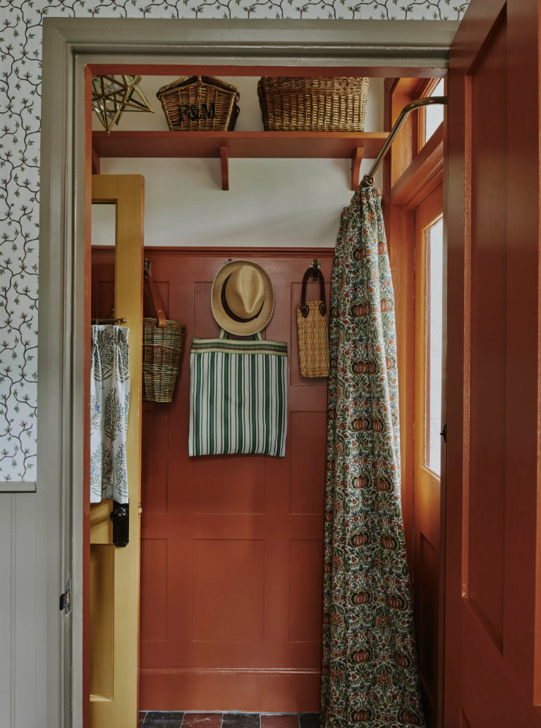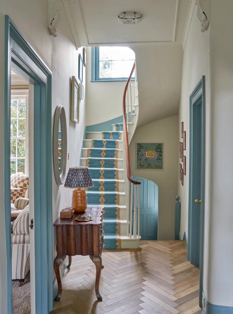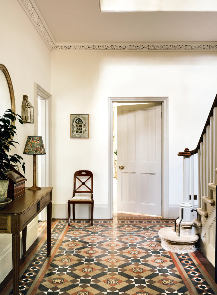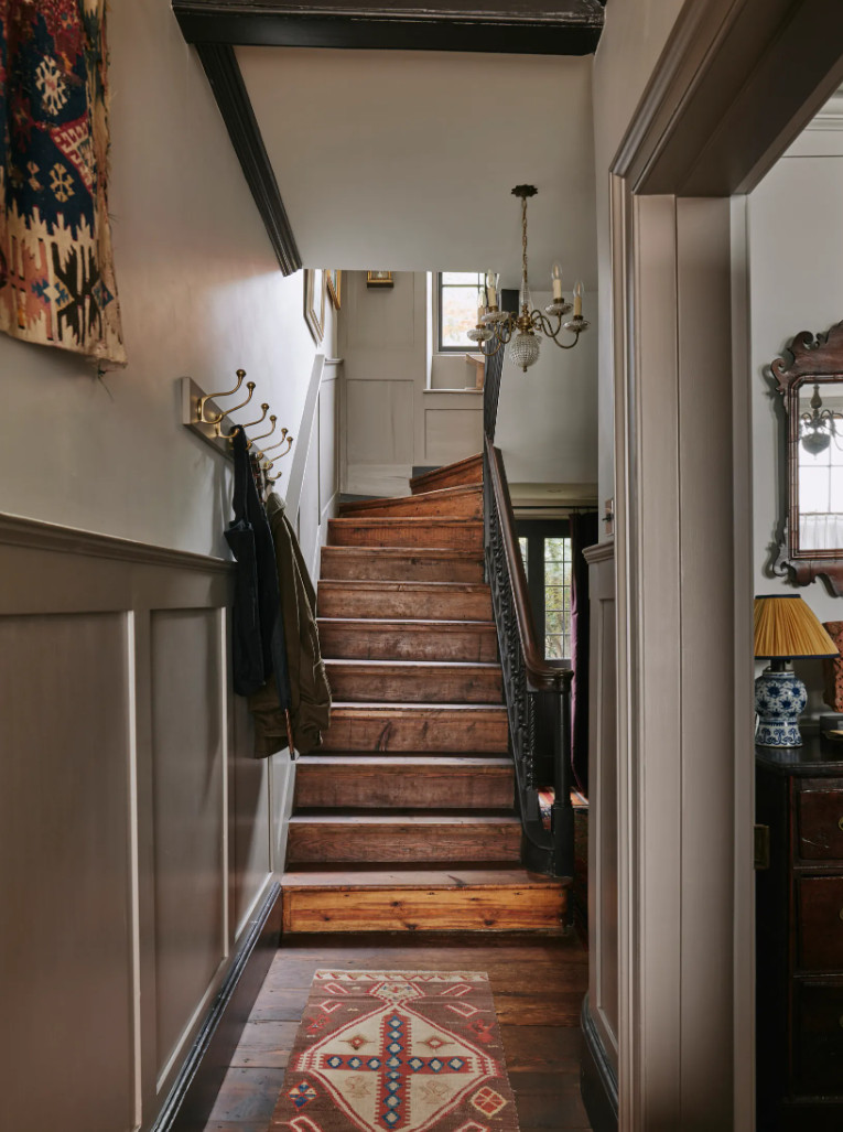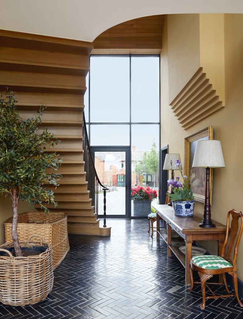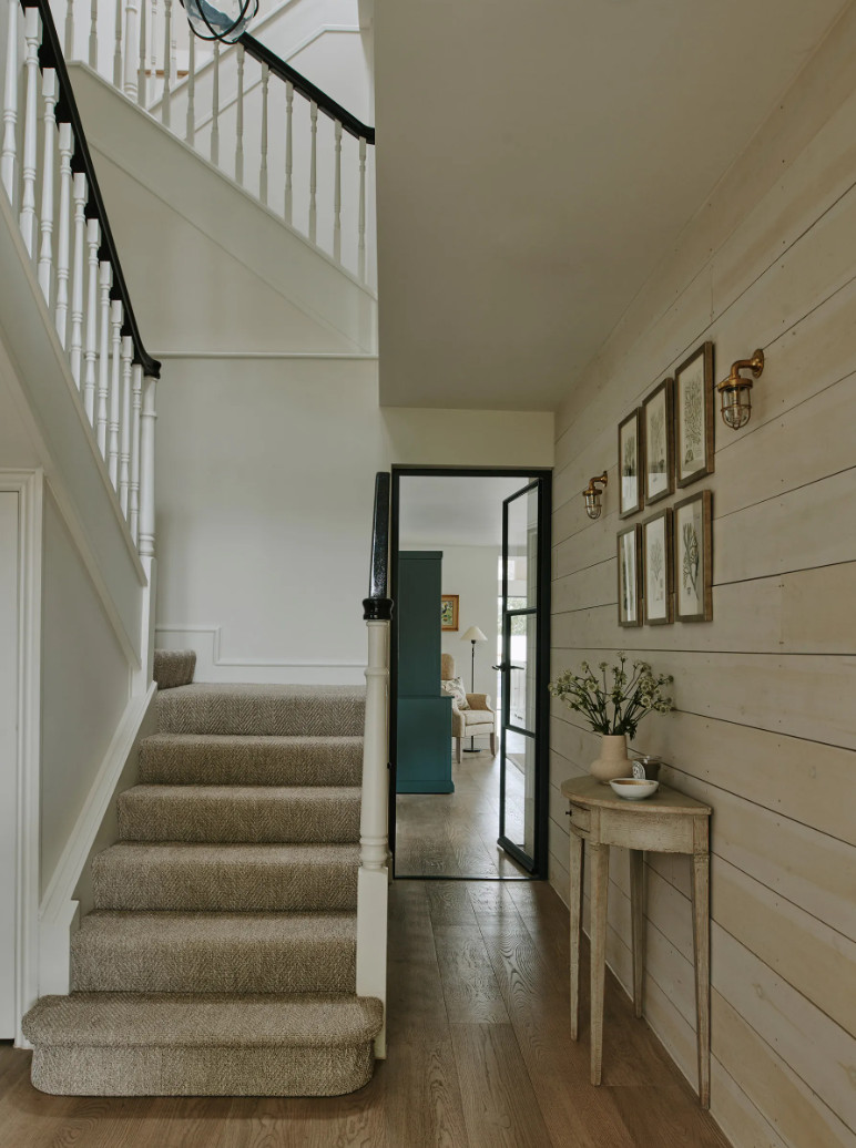 Під час оформлення важливо враховувати активність руху. Підлога має бути не лише красивою, а й практичною. Камінь, класична плитка у вінтажному стилі або зносостійкі натуральні матеріали, як-от сизаль чи джут, чудово підходять для цієї зони.