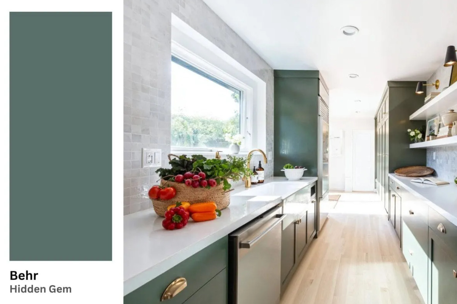 Behr пропонує Hidden Gem, димчастий нефритовий відтінок, який поєднує сині та зелені тони. Це гнучкий колір, який додає свіжості інтер’єру, не створюючи відчуття холоду.