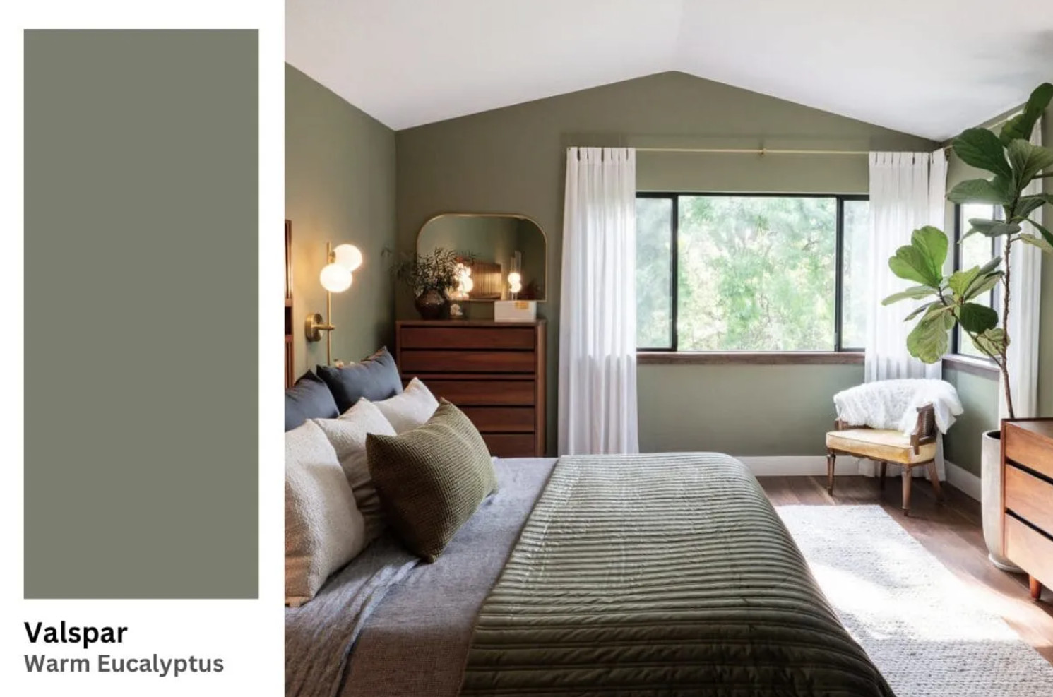 Теплий евкаліпт — зелений відтінок із природними теплими нотками, натхненний ретро-шавлією та органічним дизайном. Цей колір чудово поєднує інтер’єр і екстер’єр, створюючи спокійний, природний настрій у домі.