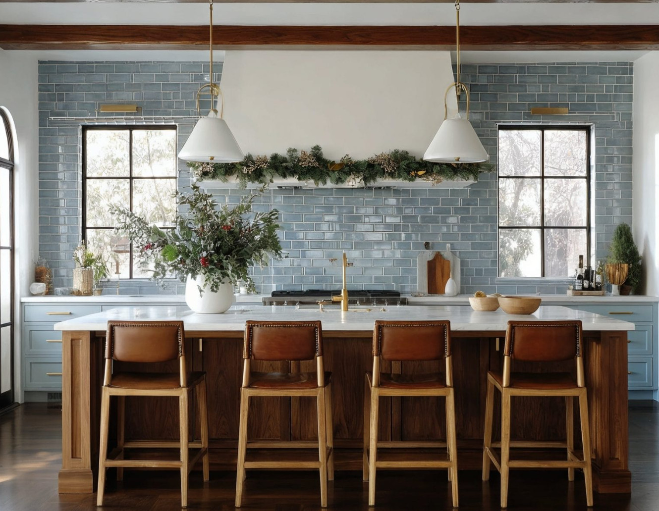 Swap a few prints or add new artwork — winter landscapes, abstract pieces in festive tones — for subtle holiday flair without clutter.