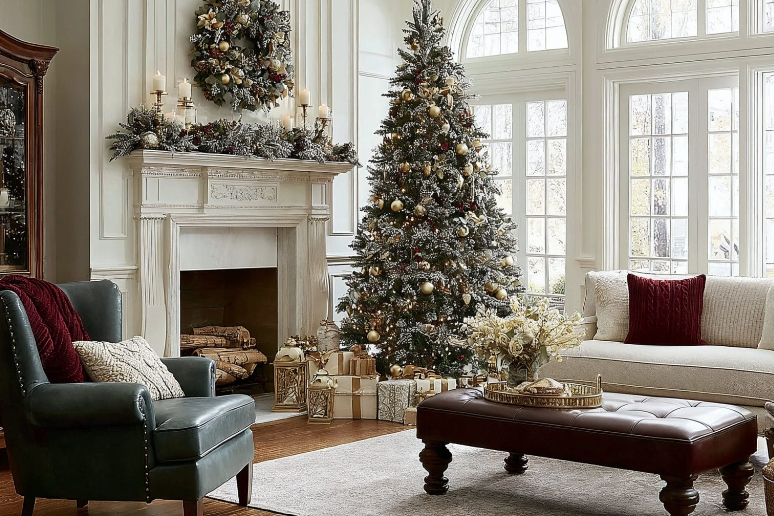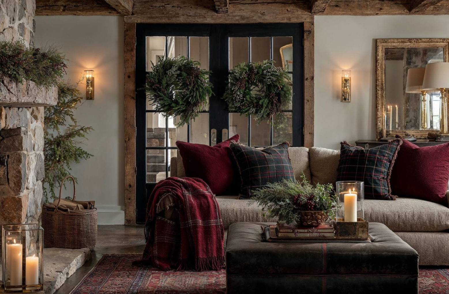 Classic Christmas: Evergreen branches, berries, plaid, ribbons, and nostalgic ornaments. Warm, traditional, and cozy — think Ralph Lauren’s refined holiday aesthetic.