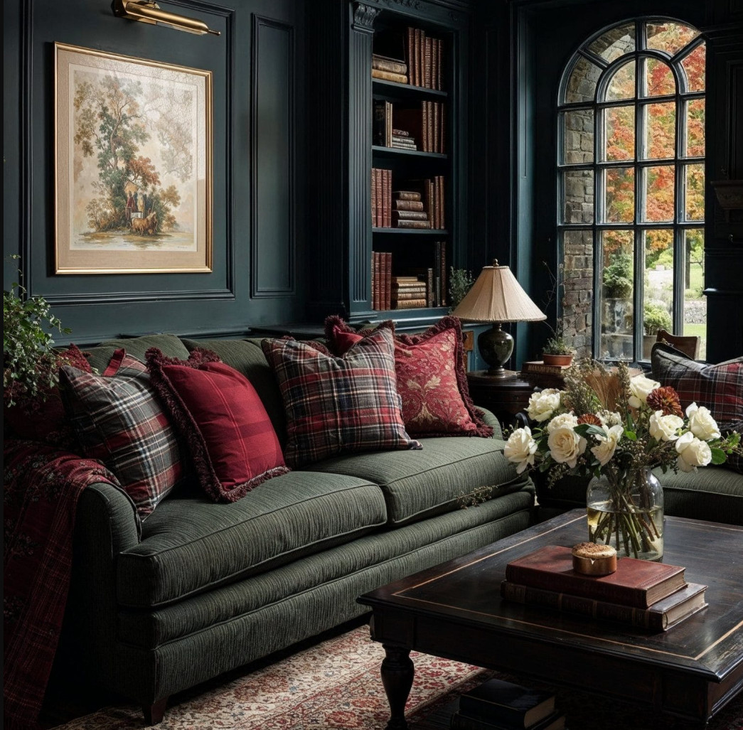Plaid is timeless. Throws, cushions, napkins, or wrapping paper in check patterns tie the space together and add warmth.