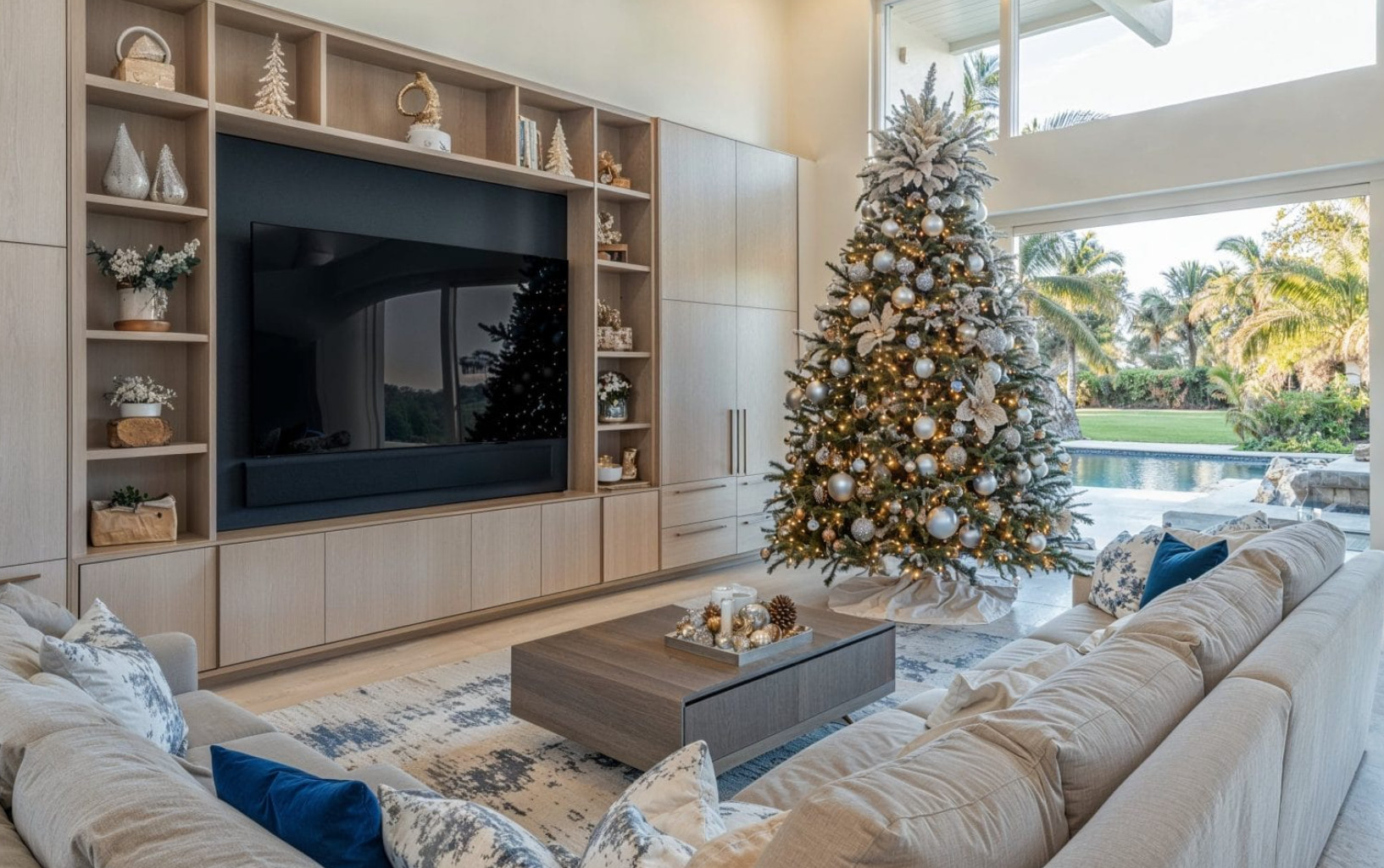 Tropical Christmas: Perfect for warmer climates — palms, bright flowers, and sunny, sandy tones. Brings joy and warmth even without snow.