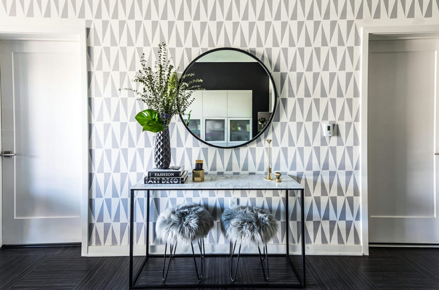 Refresh your hallway every few months. In autumn, decorate with pumpkins and dried wheat; in winter, use branches and string lights. You can even swap out artwork, but don’t overcrowd the space so it doesn’t look like a craft store.