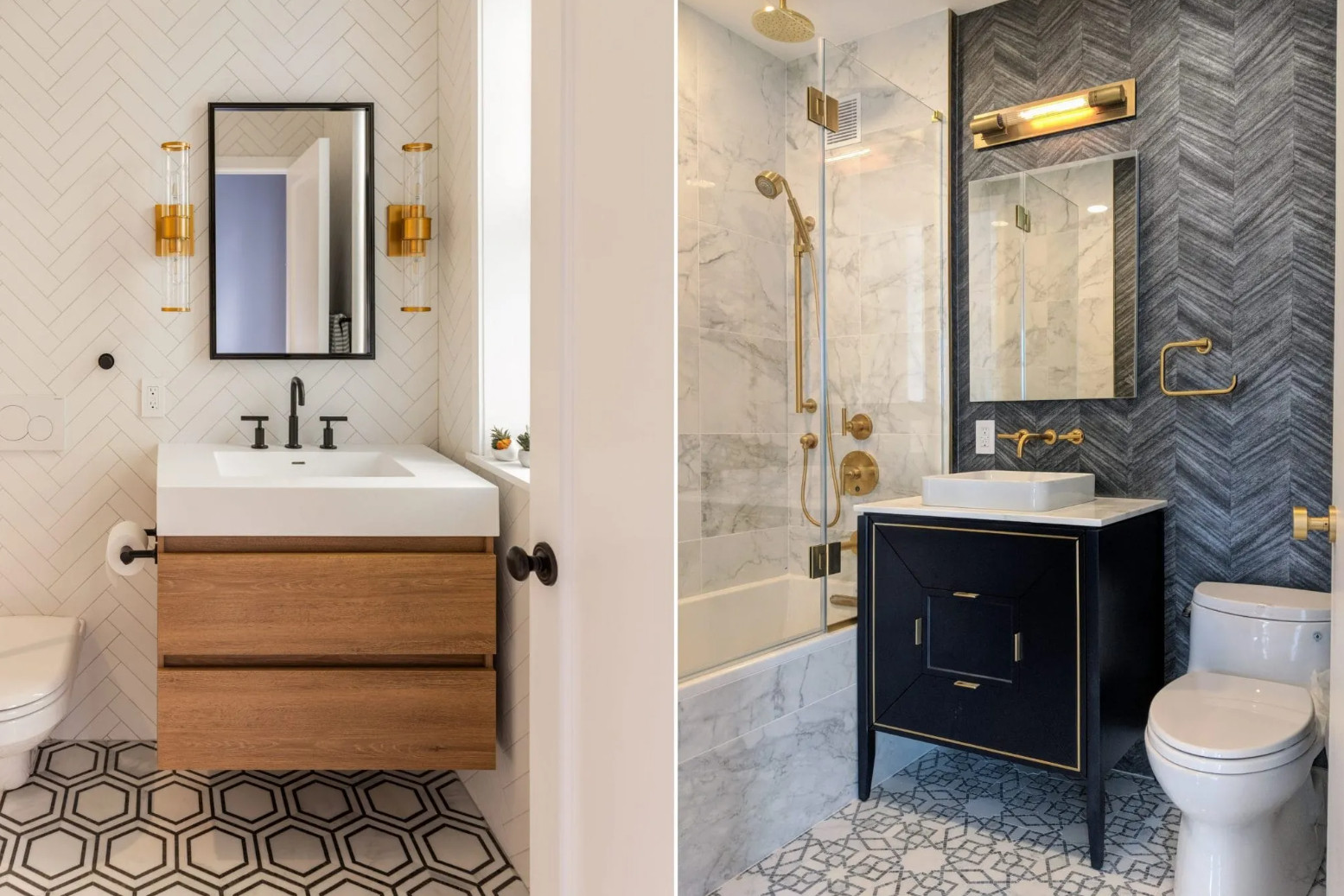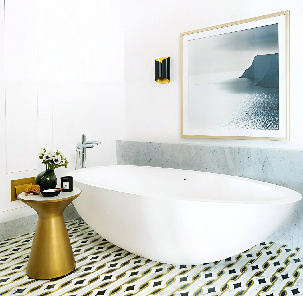 Patterned tiles bring a touch of the past into a modern interior. Checkerboards, geometric motifs, or encaustic patterns add character and uniqueness to any bathroom, while modern materials ensure durability.