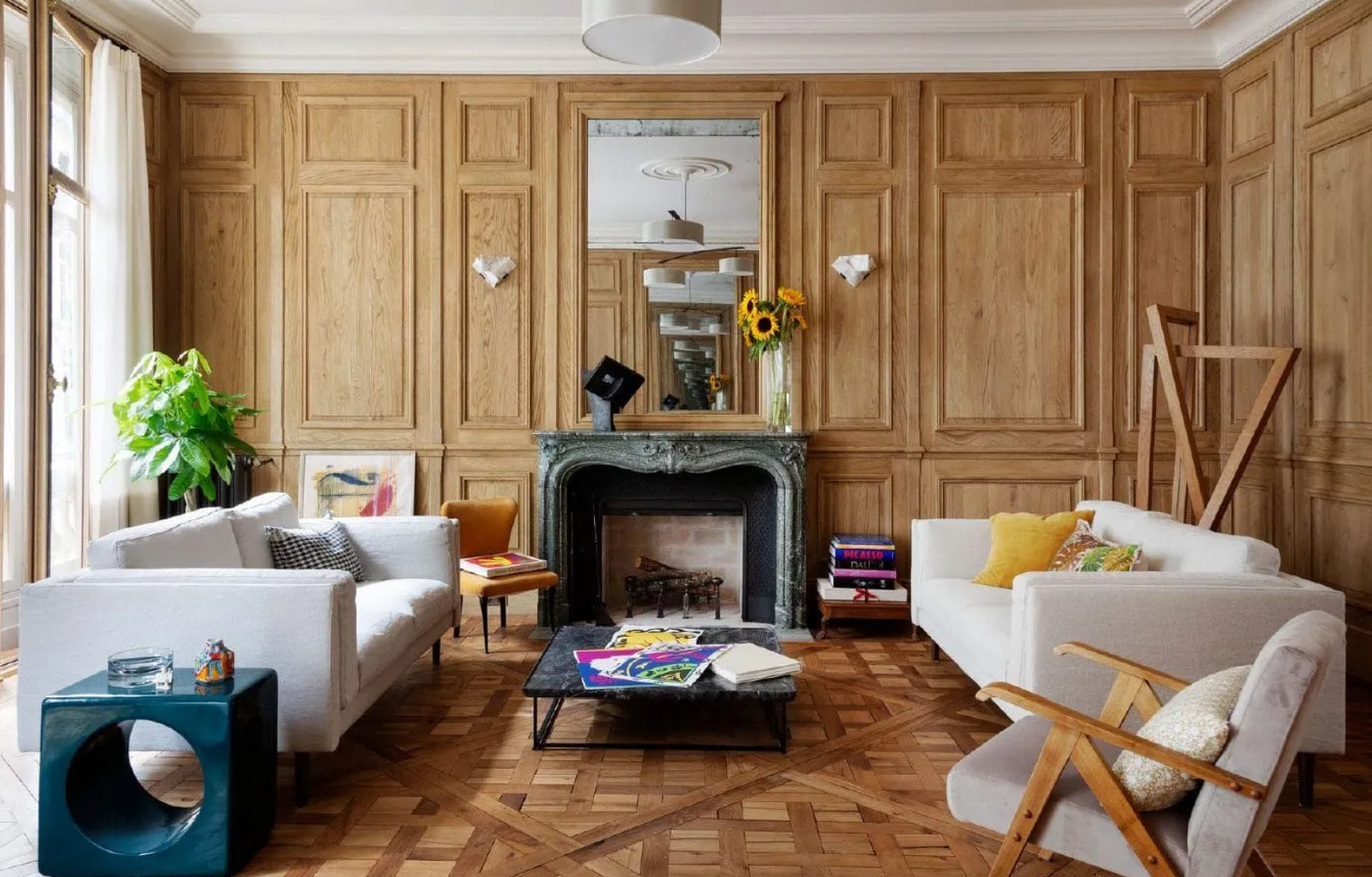 Wood with a yellowish tint adds natural warmth and softness. Stains highlight the wood grain, creating a cozy glow, while painted surfaces look modern and bold.
