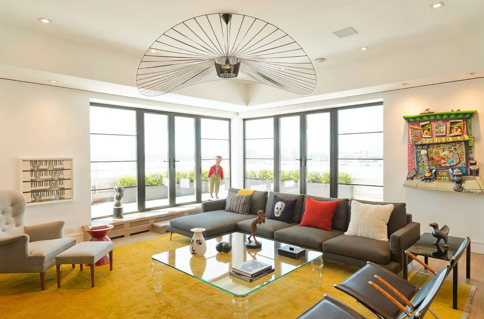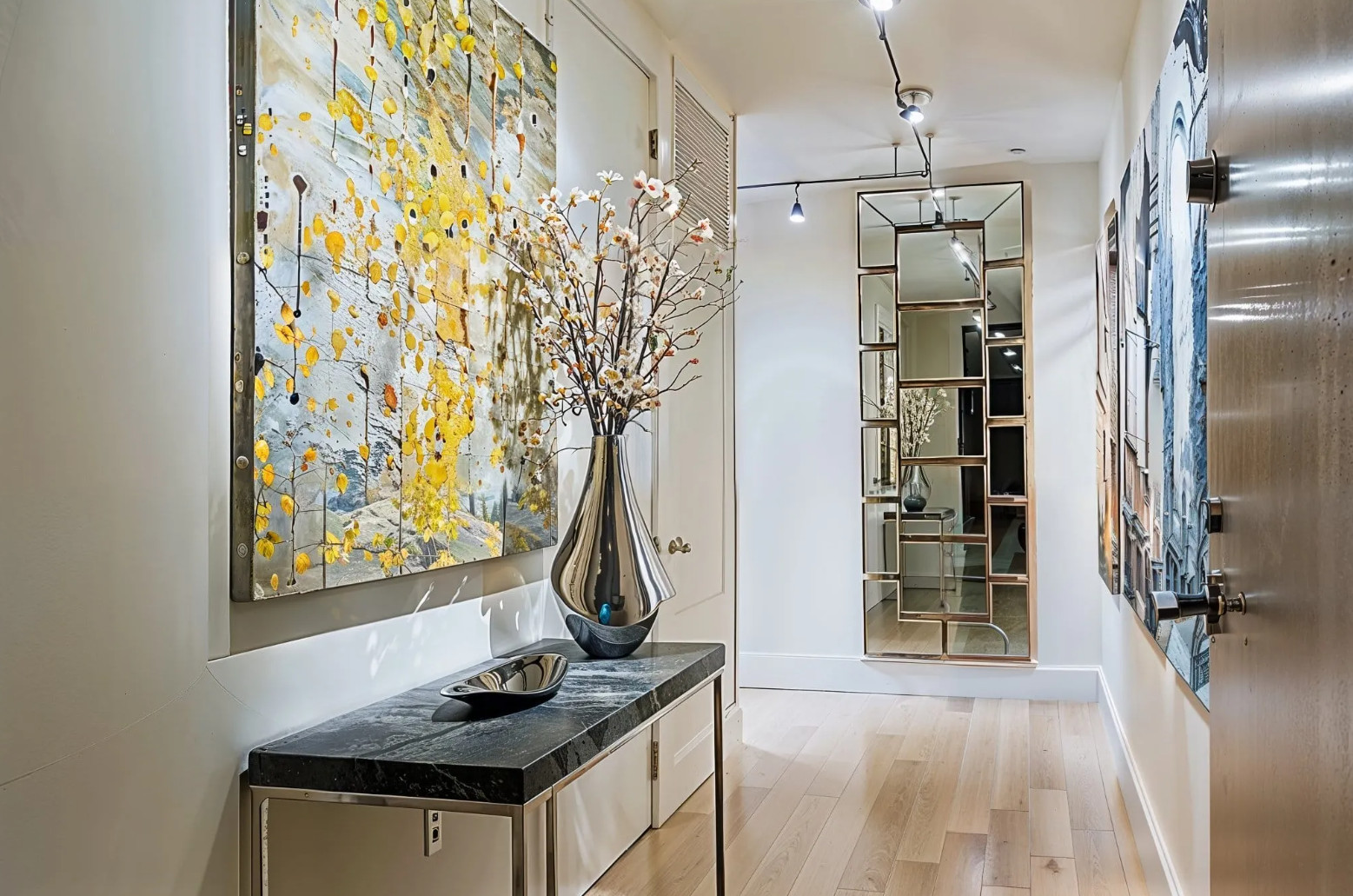 Artwork with yellow elements can “bring walls to life” and add movement. A gallery wall with a few yellow pieces unifies the room’s palette.