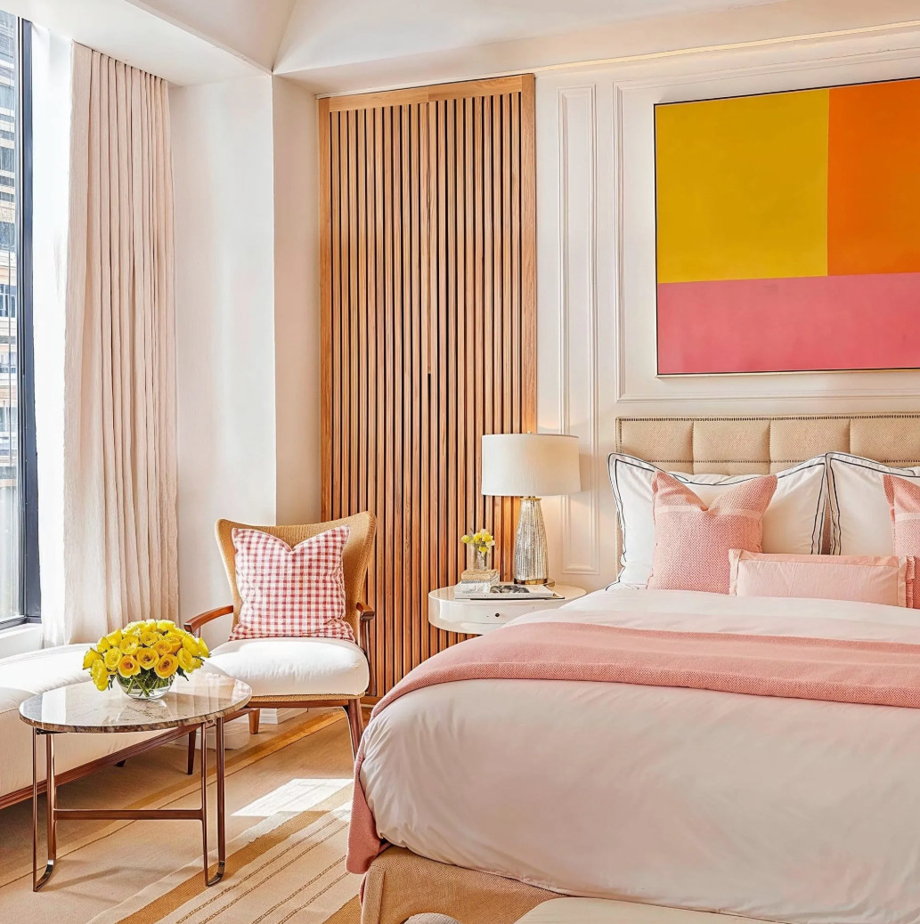 Yellow furniture instantly changes a room’s mood. A light cream-yellow sofa refreshes the space without overwhelming it, while a mustard or marigold armchair becomes a striking focal point. In the bedroom, a soft bench at the foot of the bed with yellow upholstery adds warmth and style.