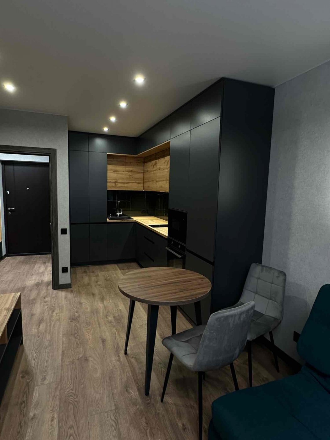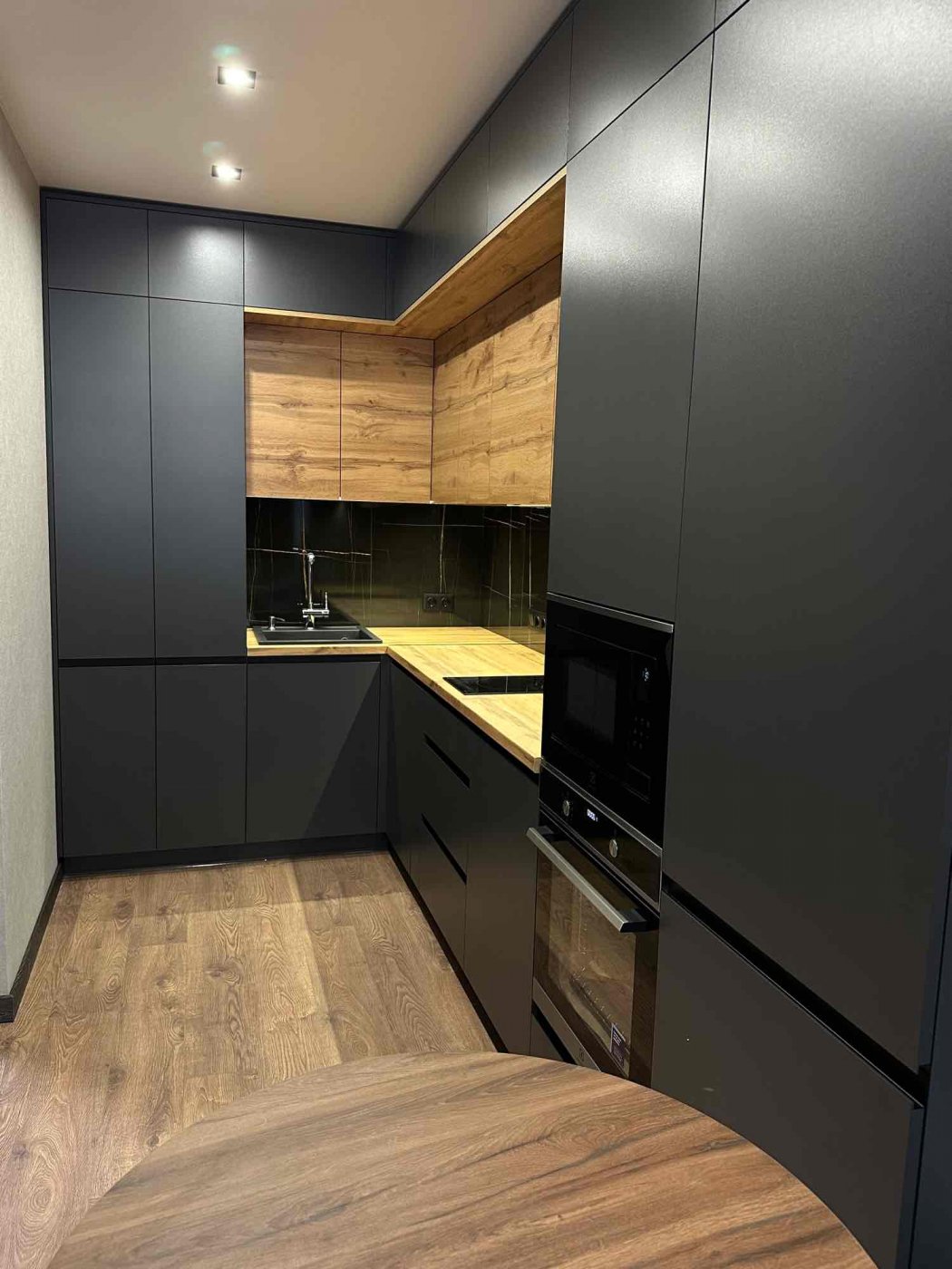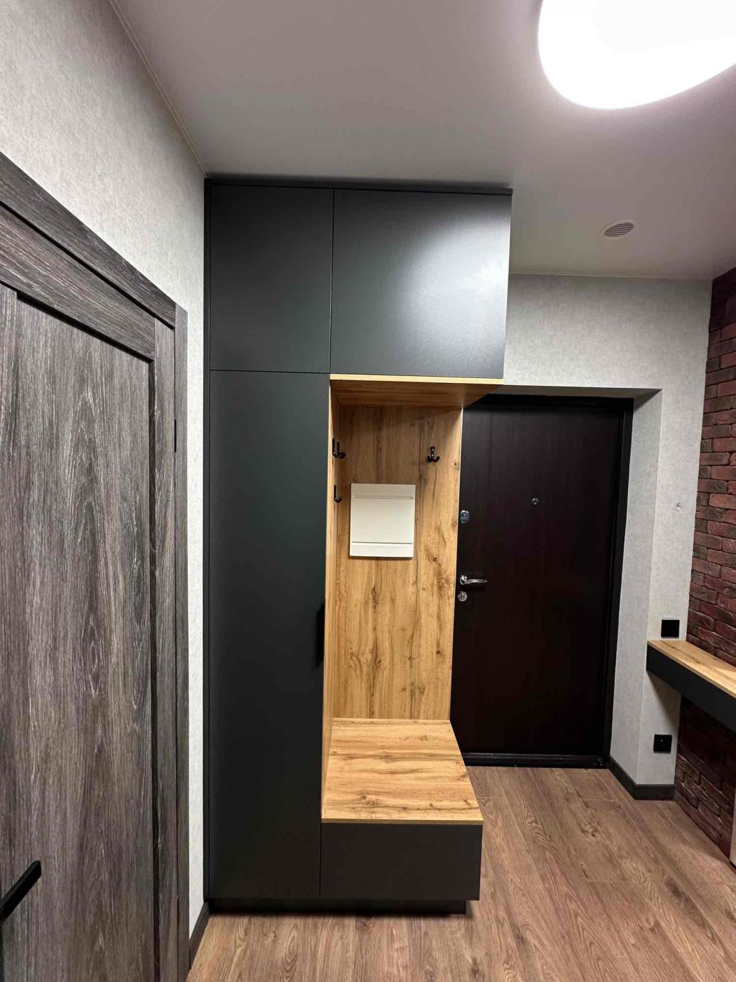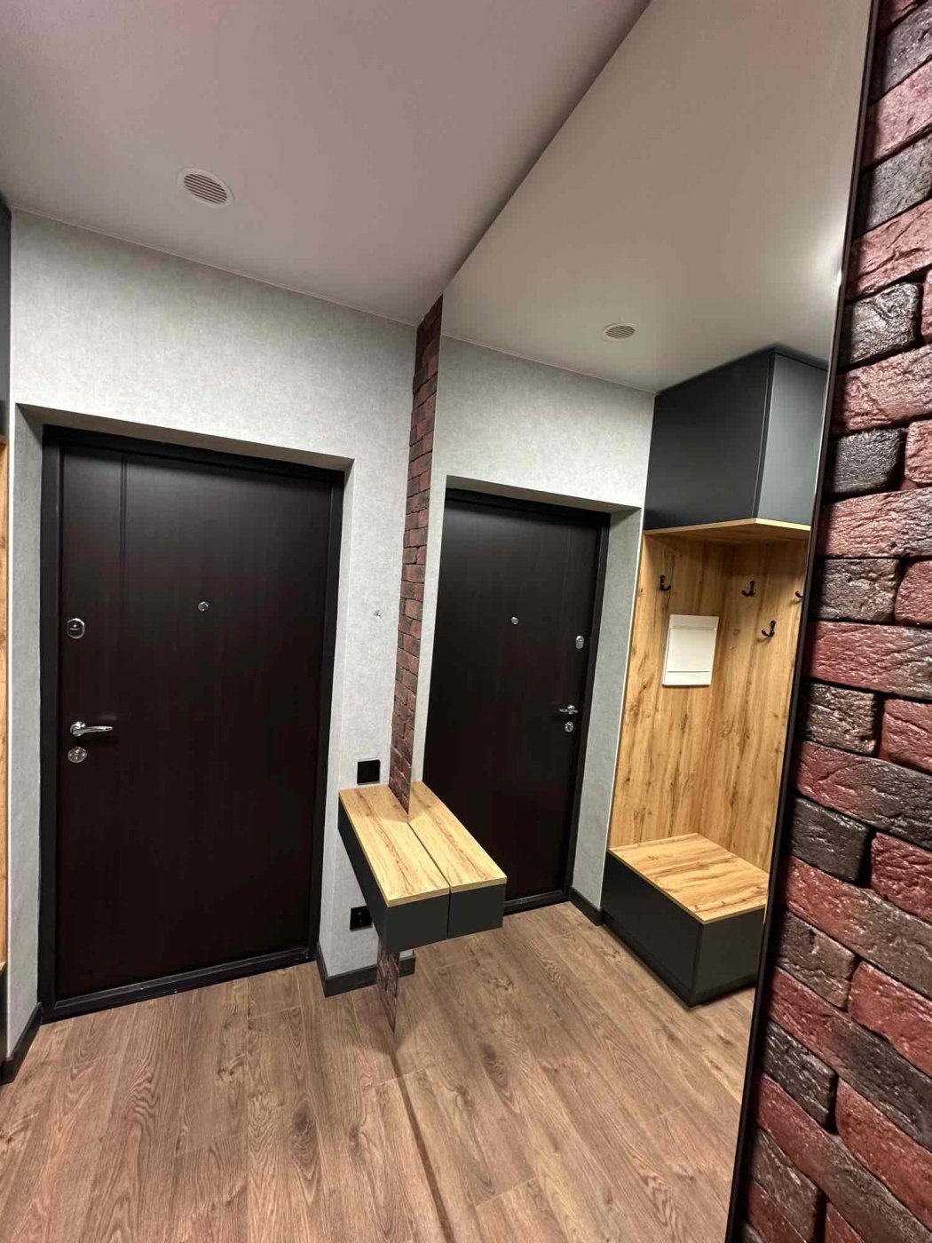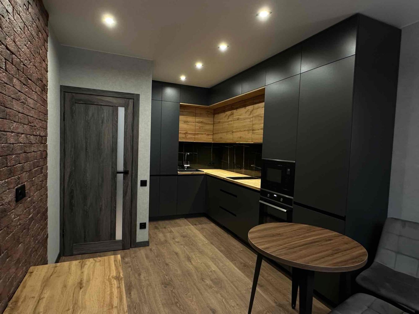 Ми виконали сучасний ремонт у темних тонах у просторій 1-кімнатній квартирі площею 44,3 м². Темна палітра надає інтер’єру елегантності та затишку, а використані якісні матеріали та нова сантехніка забезпечують комфорт і довговічність. Квартира повністю готова до комфортного проживання, створюючи стильне та сучасне середовище для життя.