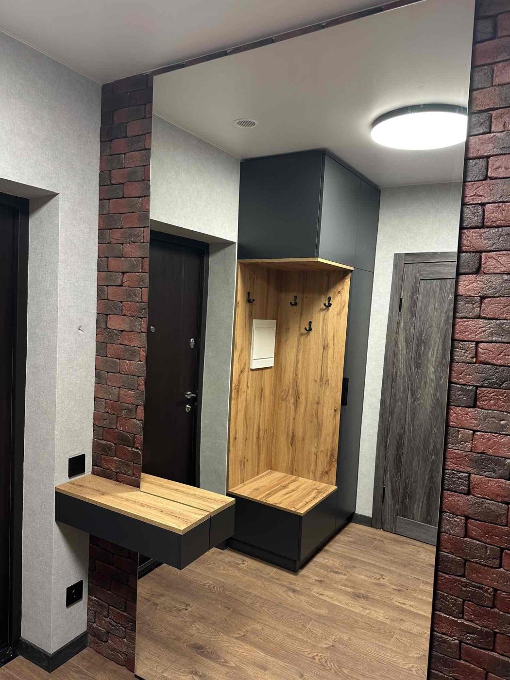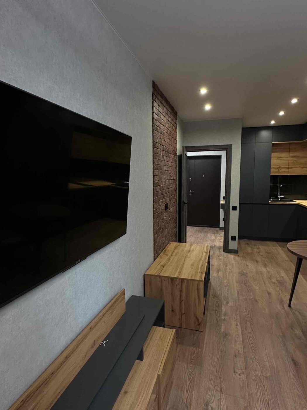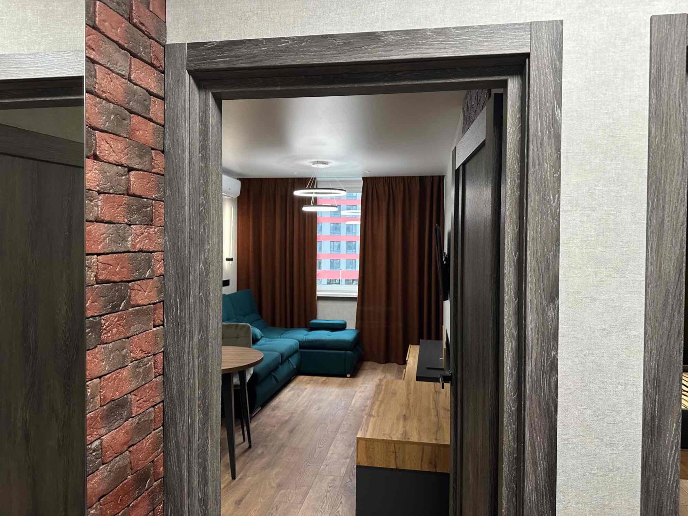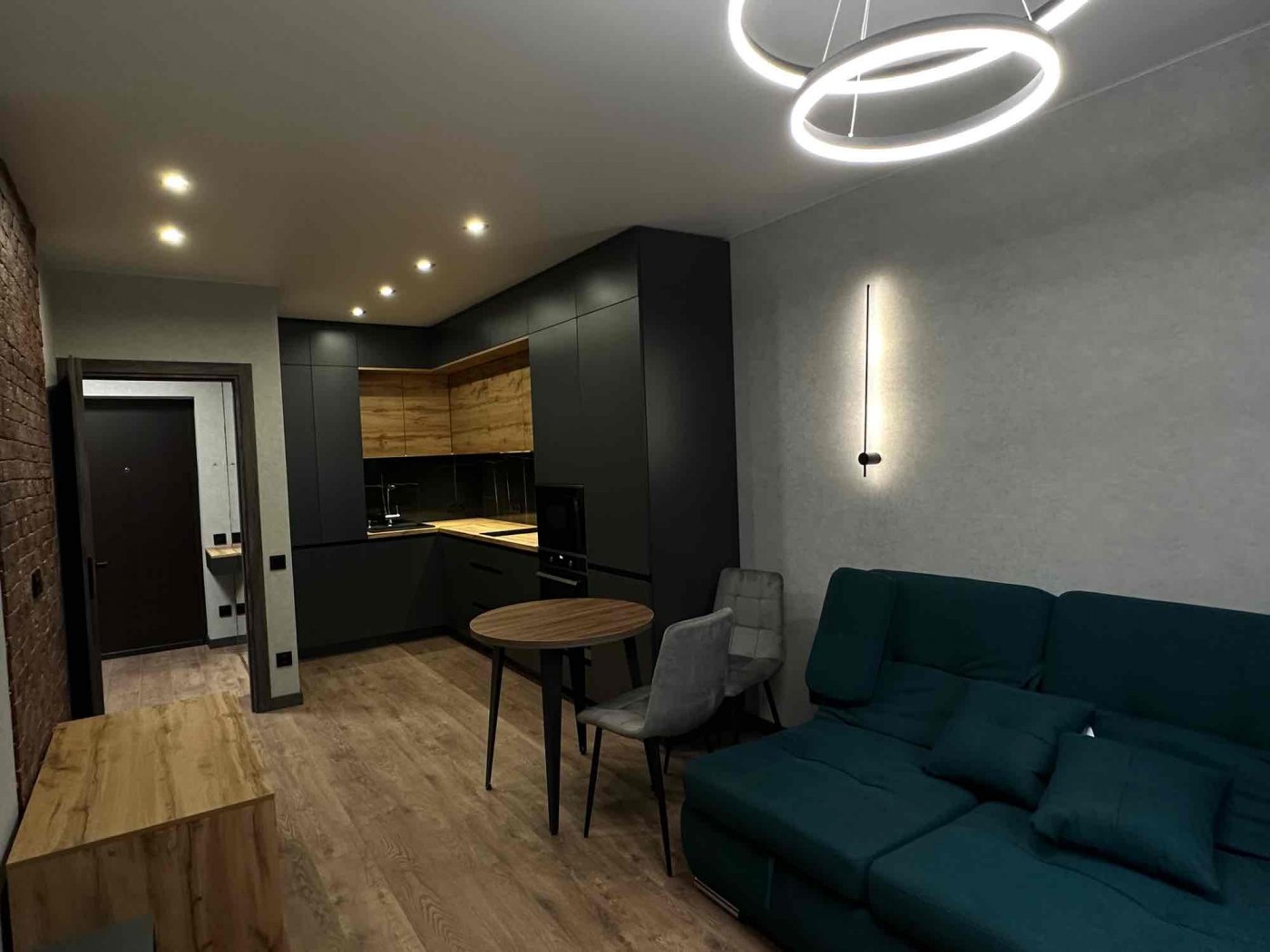 Ми виконали сучасний ремонт у темних тонах у просторій 1-кімнатній квартирі площею 44,3 м². Темна палітра надає інтер’єру елегантності та затишку, а використані якісні матеріали та нова сантехніка забезпечують комфорт і довговічність. Квартира повністю готова до комфортного проживання, створюючи стильне та сучасне середовище для життя.