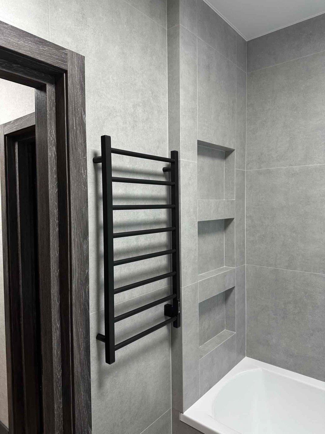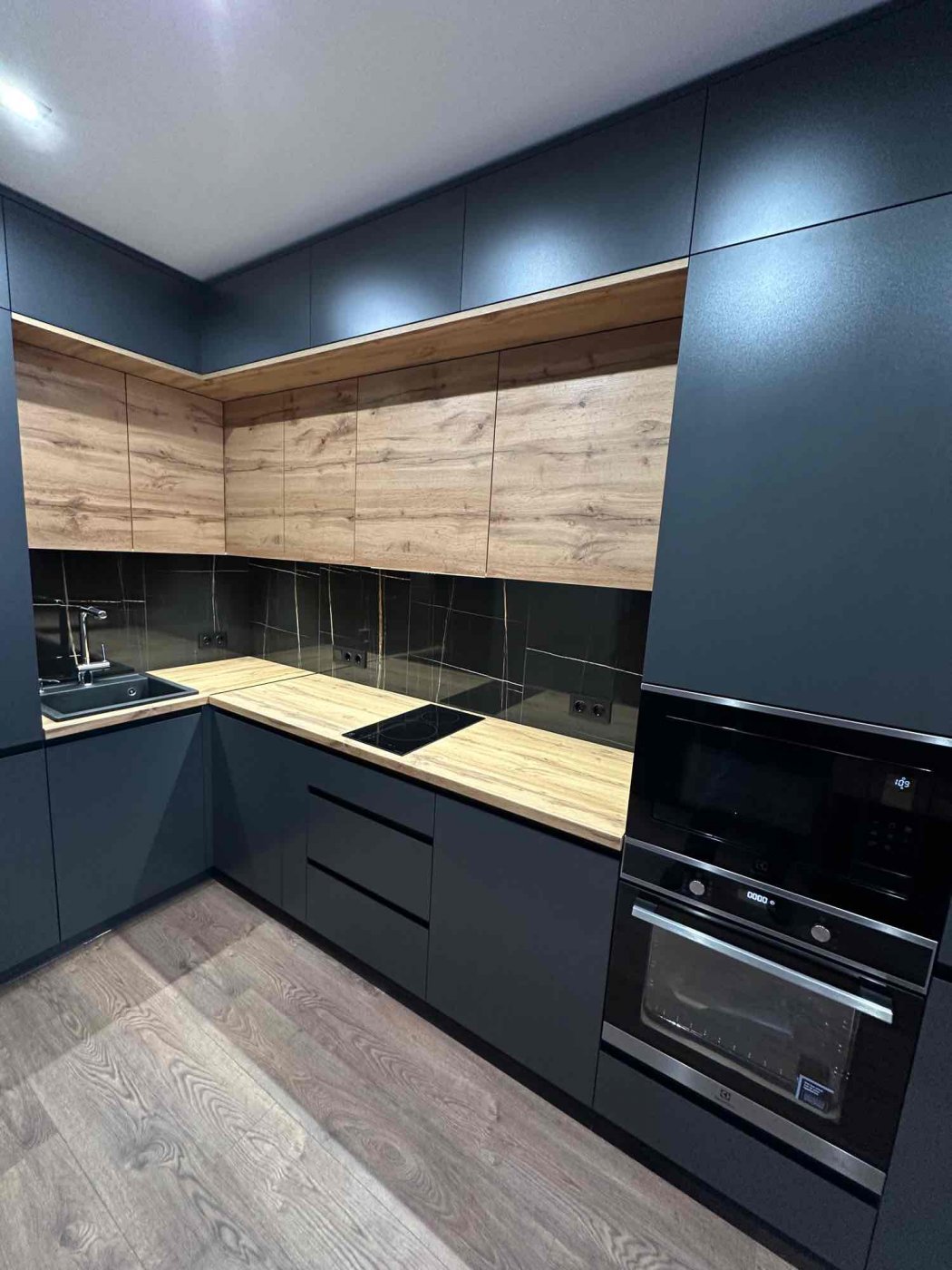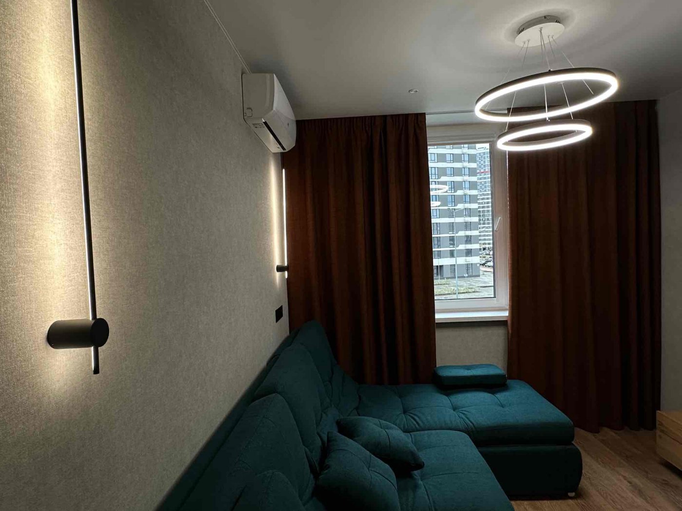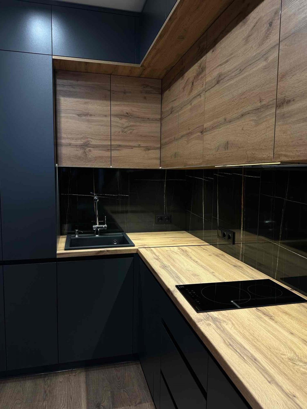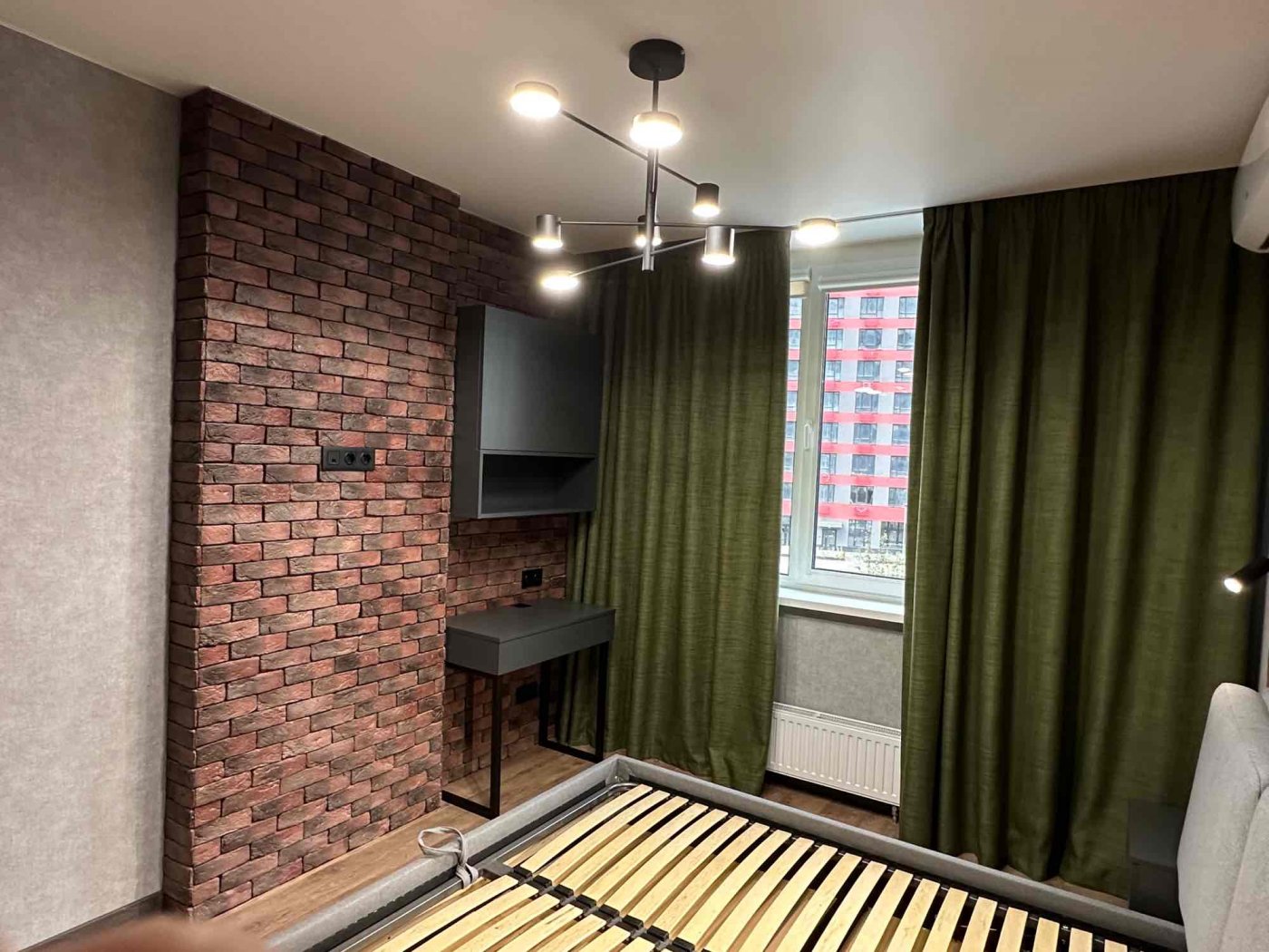 Ми виконали сучасний ремонт у темних тонах у просторій 1-кімнатній квартирі площею 44,3 м². Темна палітра надає інтер’єру елегантності та затишку, а використані якісні матеріали та нова сантехніка забезпечують комфорт і довговічність. Квартира повністю готова до комфортного проживання, створюючи стильне та сучасне середовище для життя.