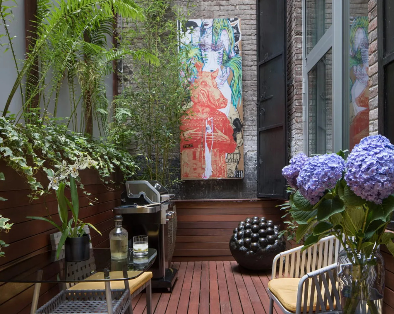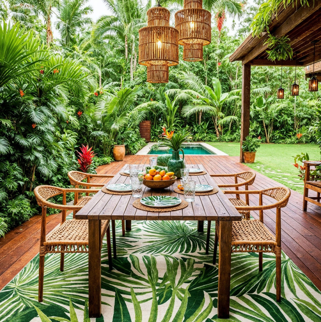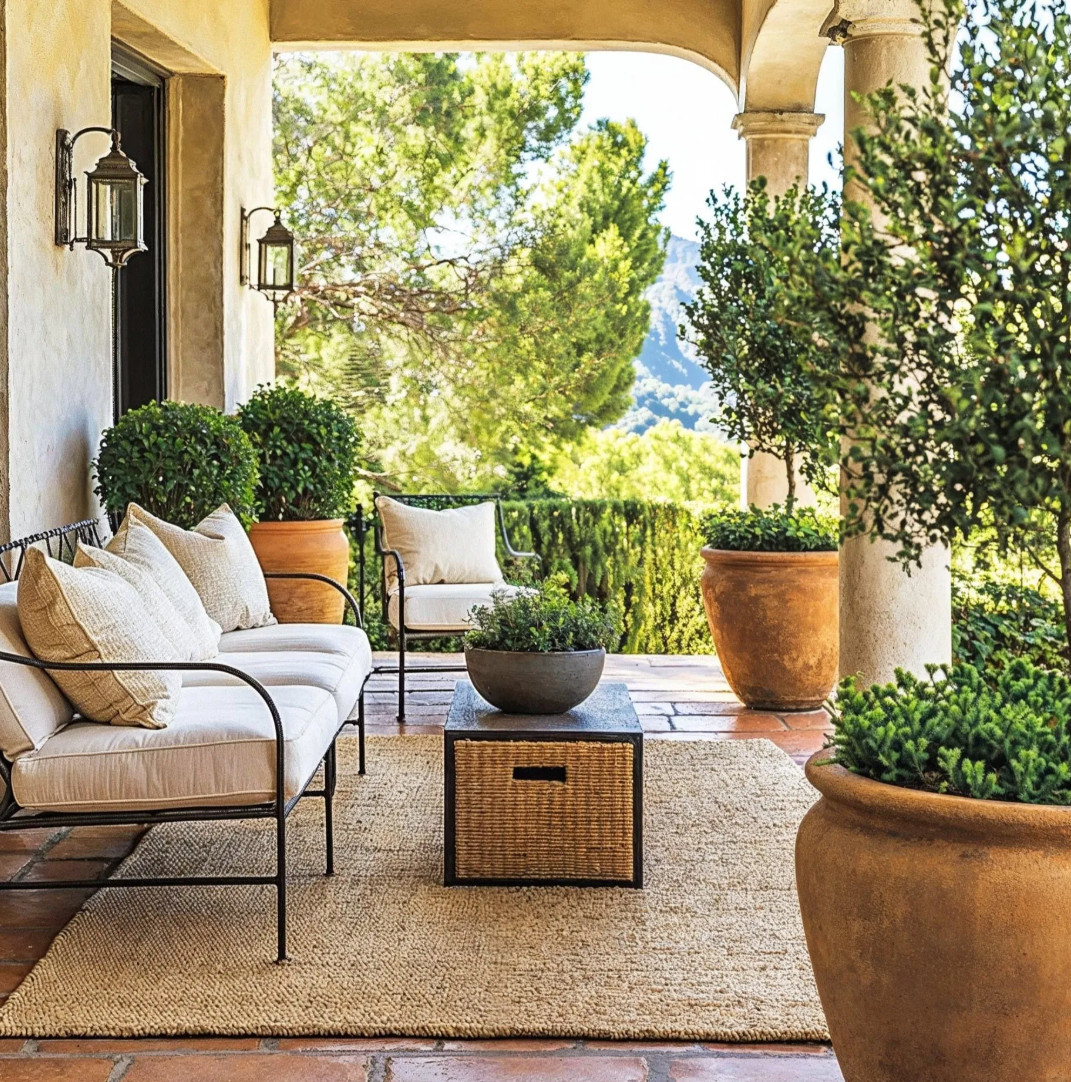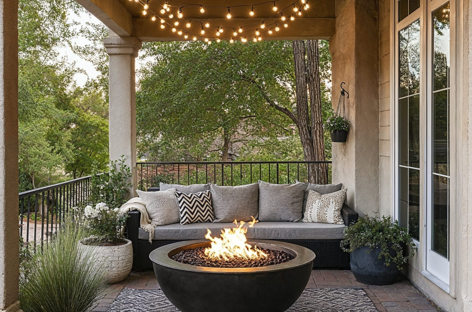 Styl boho pozostaje na topie — miękkie dywany, rozrzucone poduszki, ręcznie robiona ceramika i lampiony tworzą przytulny klimat. Patio nie musi być idealne — lekki nieład dodaje mu charakteru i autentyczności. Przestrzeń wygląda tak, jakby powstawała stopniowo, z miłością.