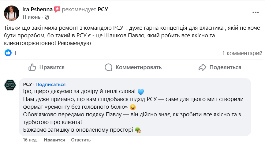 Właśnie zakończyłam remont z zespołem RSU – to świetna koncepcja dla właściciela, który nie chce być kierownikiem budowy, bo w RSU jest już taka osoba – Paweł Szashkow. Wykonuje wszystko solidnie i z nastawieniem na klienta! Polecam.