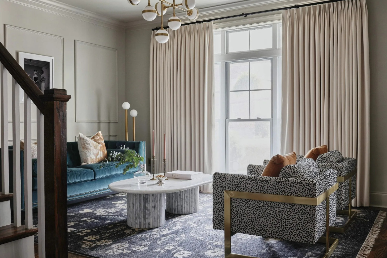 Чтобы пространство не выглядело слишком мягким, добавьте структурные элементы — лаконичные столики или светильники из металла.