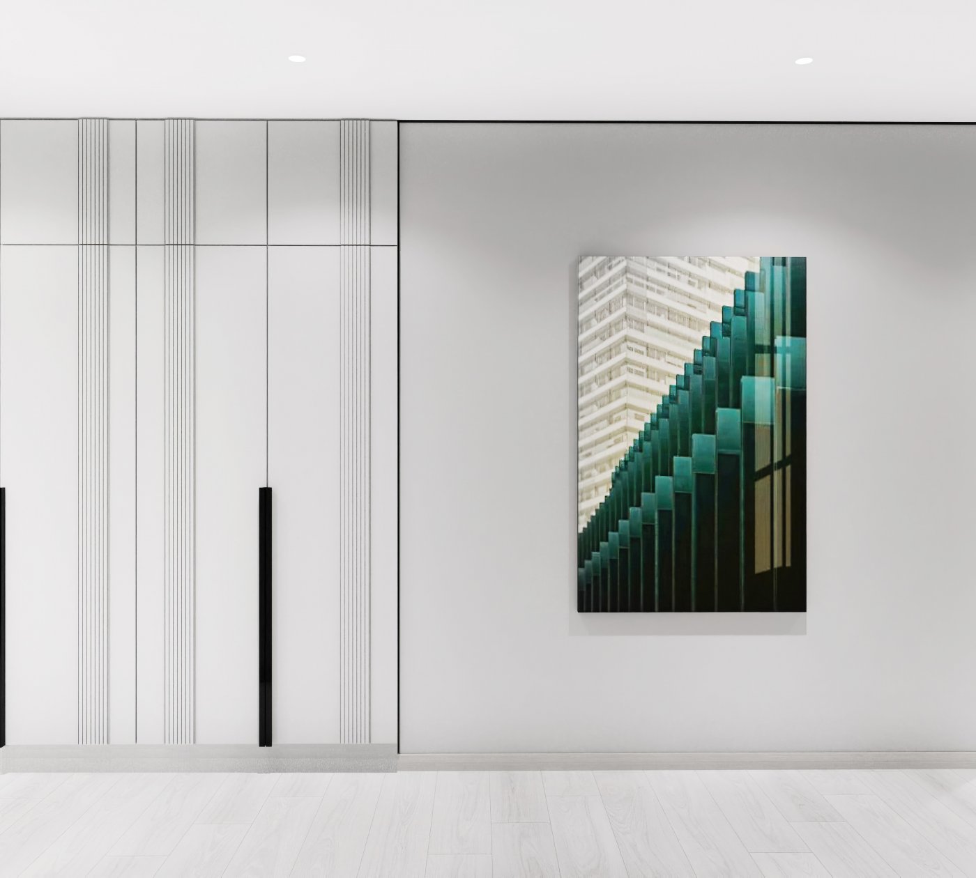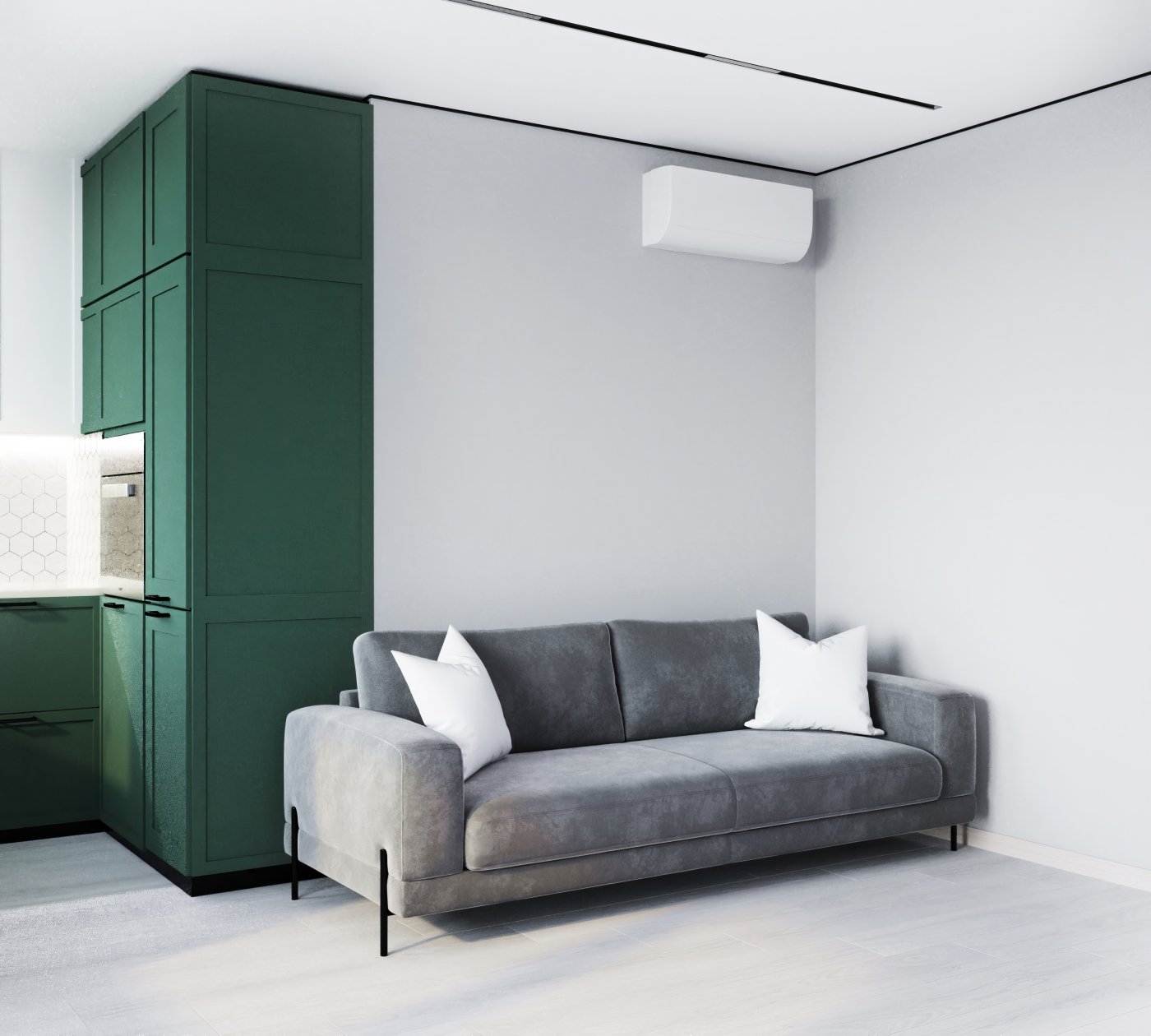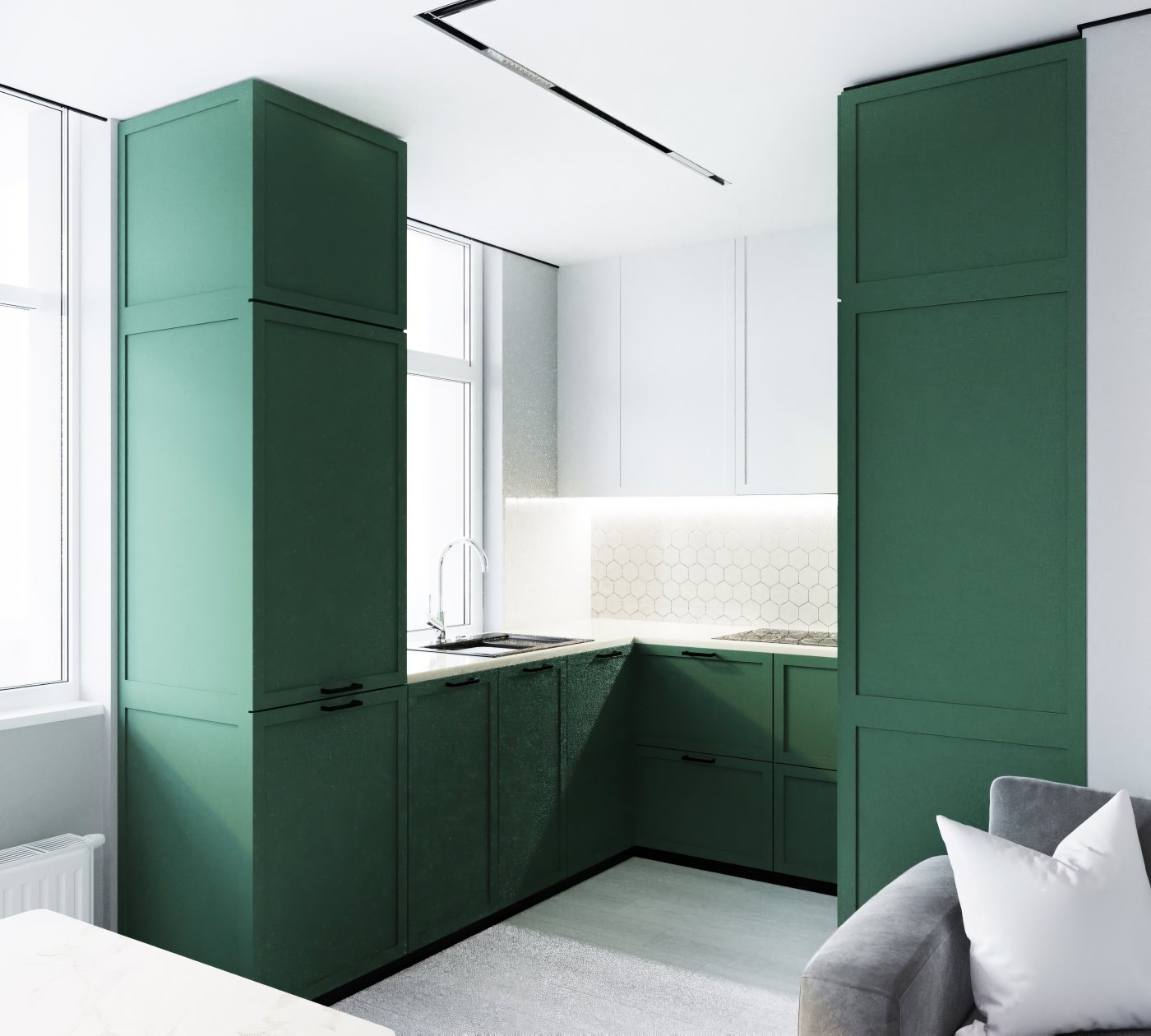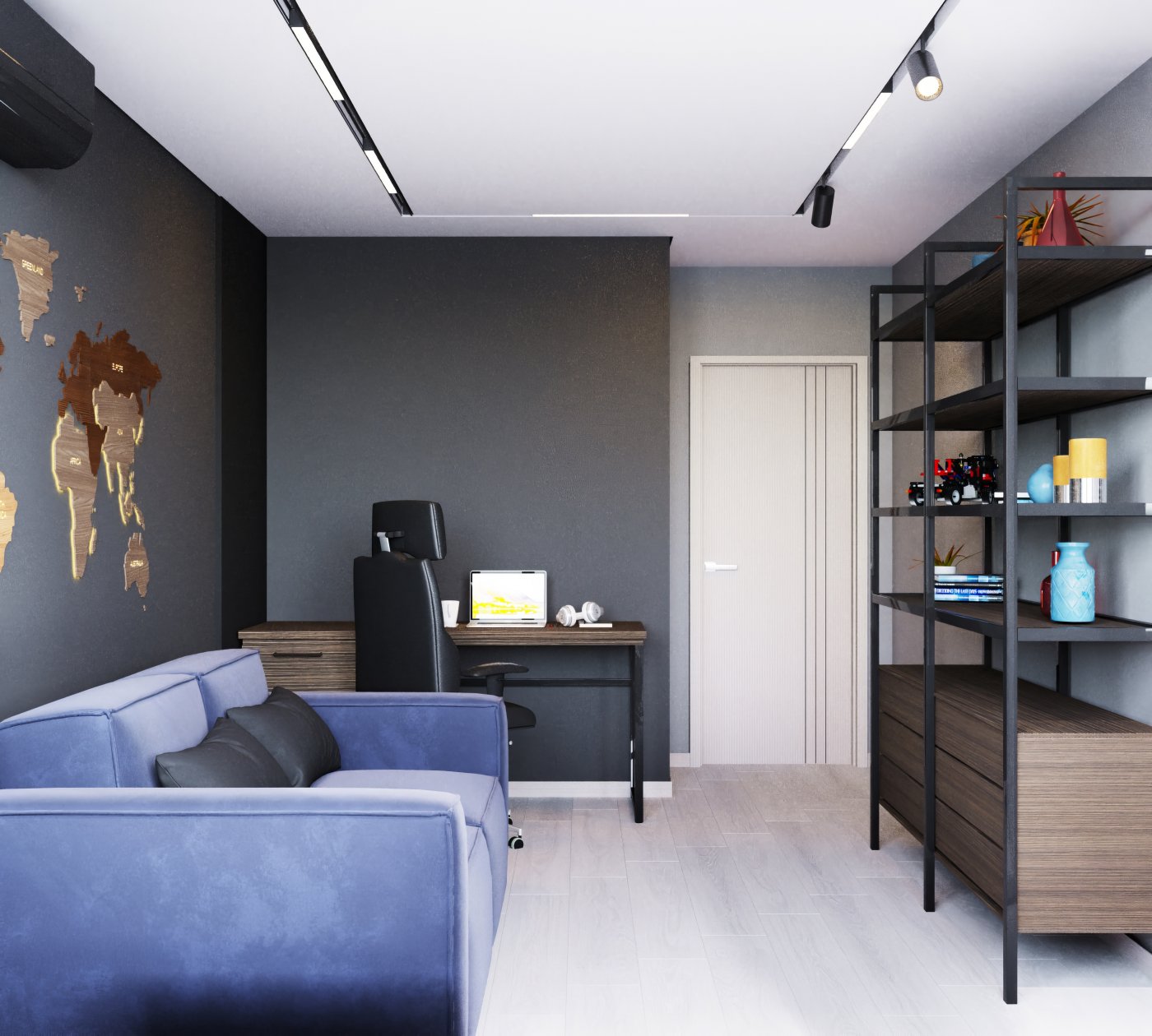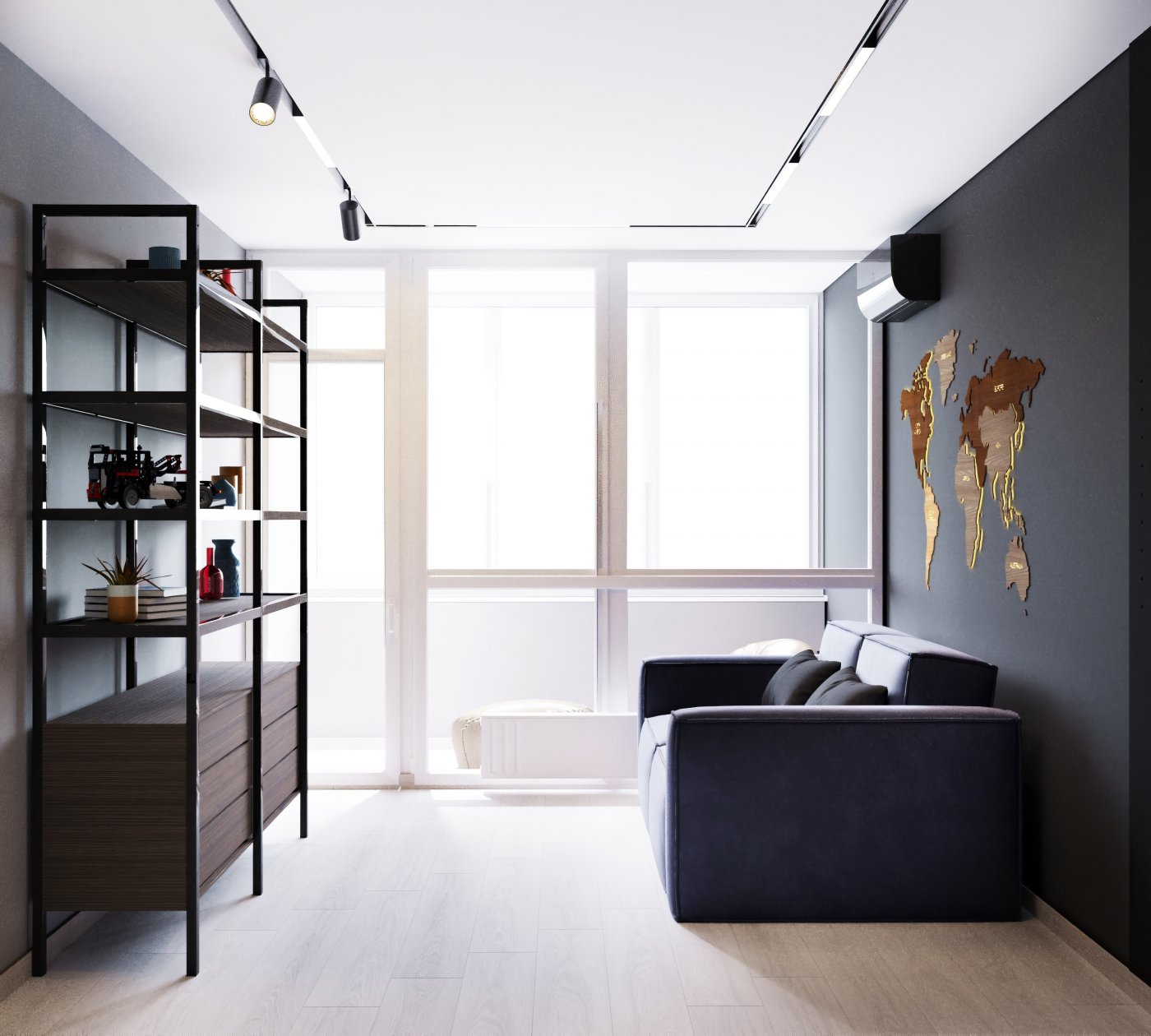 Интерьер двухкомнатной квартиры выполнен в современном стиле с использованием светлой палитры и натуральных материалов, что создаёт ощущение простора и уюта. Кухня оснащена встроенной техникой и гармонично объединена с обеденной зоной, обеспечивая комфорт и удобство. Спальня оформлена в минималистичном стиле с продуманными решениями для хранения, что делает пространство максимально функциональным.